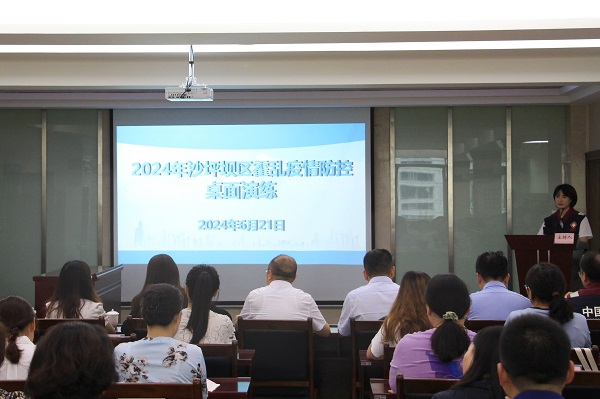 为持续提升沙坪坝区传染病疫情应急处置能力,6月21日上午,2024年沙坪坝区霍乱疫情防控桌面演练在沙坪坝区疾病预防控制中心举行。