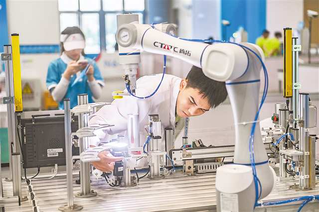 6月24日,第二届“一带一路”国际技能大赛首日,选手在工业机器人系统操作项目中比赛。记者 郑宇 摄/视觉重庆