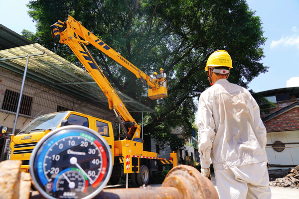 “清理线路通道时,注意安全距离,做好路面引导……”7月2日,在江南街道办事处大堡村10千伏碗锯线17号杆处,国网重庆长寿供电公司江南供电所所长王正洪对工作人员再三叮嘱道。这是该公司利用绝缘斗臂车及吊车助力乡村开展通道治理的一个工作镜头。