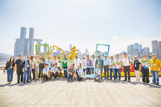 8月27日,2024年“一带一路”记者组织论坛主题采风活动,记者们在重庆市规划展览馆外合影留念。记者 李裕锟 摄/视觉重庆