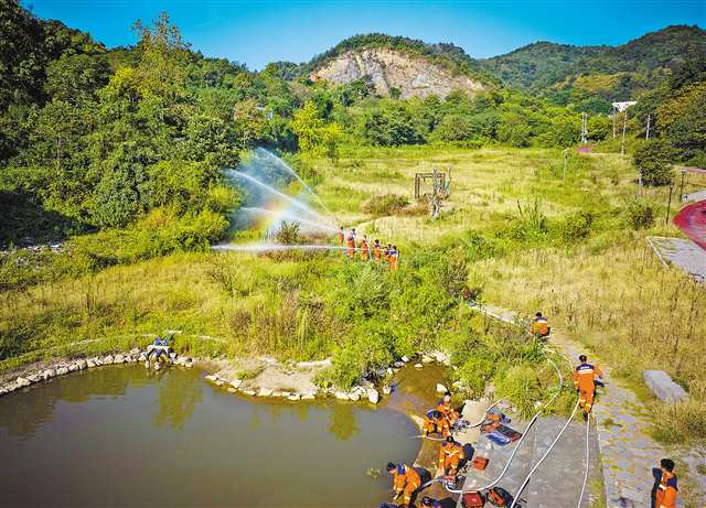 连日高温下,九龙坡区应急局综合救援支队分赴中梁山、陶家片区进行24小时备勤前置驻防,每天早中晚3次巡护,保证最多不超过10分钟抵达现场。同时利用前置驻防时间提前摸排林区隐患,进行突发火情处置演练,强化分队处置突发火情能力,守护绿色森林安全。(记者 郑宇 摄/视觉重庆)