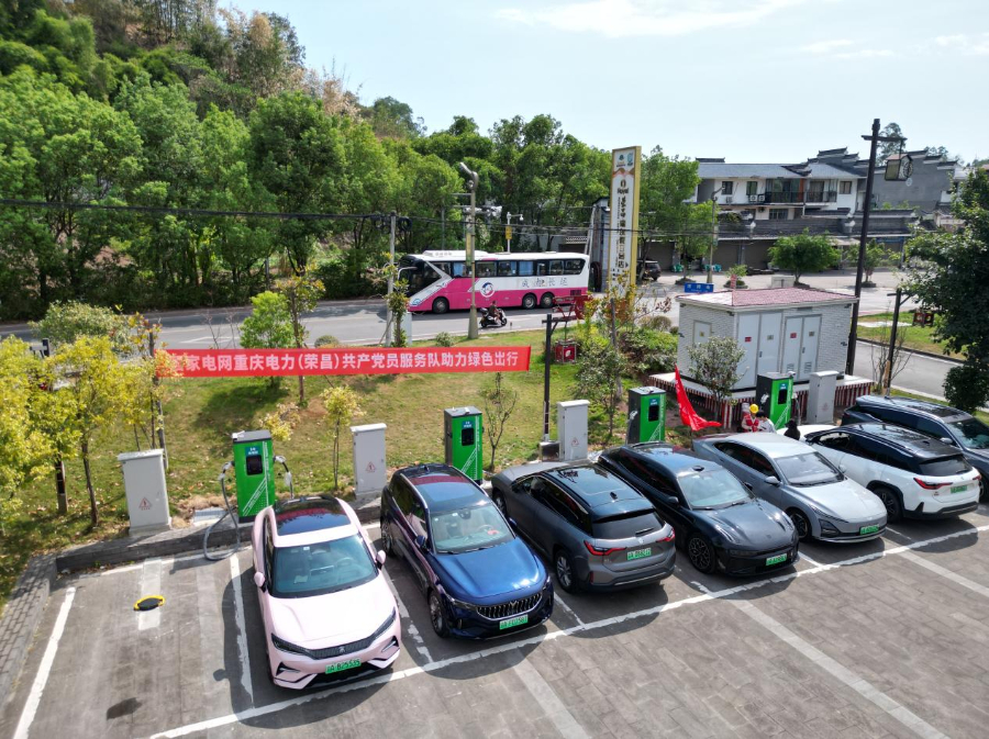 在重庆市荣昌区的万灵古镇,古镇上新增加的 8台80千瓦直流快充桩在国庆假期投入运行。国庆假期,国家电网重庆电力(荣昌)红岩共产党员服务队队员在万灵古镇开展快充站及古镇安全用电检查,提升广大访渝游客的出游体验感。