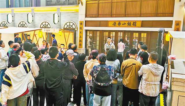 上午10:00,重庆抗战戏剧博物馆刚刚开馆,就迎来了第一波前来参观的市民和游客。在这里,他们看展、观剧、体验演戏,从早到晚一整天时间都被多样活动填满,不亦乐乎。国庆期间,抗建堂不仅带来了方言话剧《河街茶馆》的驻场演出,还推出了当下正火的NPC(角色扮演者)主题互动集市、街头戏剧表演,为市民们呈现一个“能看、能玩、能演”的戏剧街区。