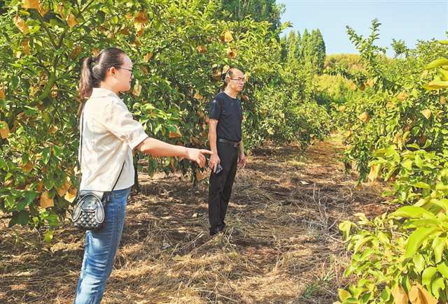 潼南区梓潼街道高梯社区,党员干部查看柠檬受旱情况,并进行相应技术指导。(受访者供图)