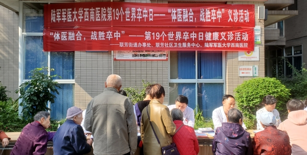为提高公众对卒中早期识别的意识与技能,了解卒中预防、急救和康复知识,树立“运动是良医”的健康理念。在第19个“世界卒中日”(10月29日)即将来临之际,10月28日,沙坪坝区联芳社区卫生服务中心联合陆军军医大学西南医院、联芳街道,深入香榭里社区开展脑卒中健康义诊活动。