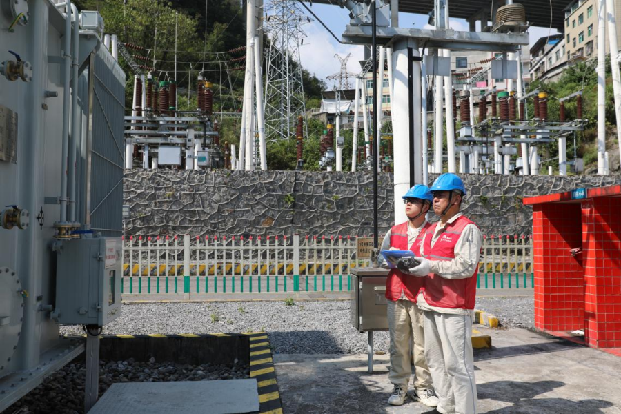 10月18日,国网重庆黔江供电公司员工加强变电站设备巡视,筑牢用电安全“堤坝”。(何玥晗 摄)