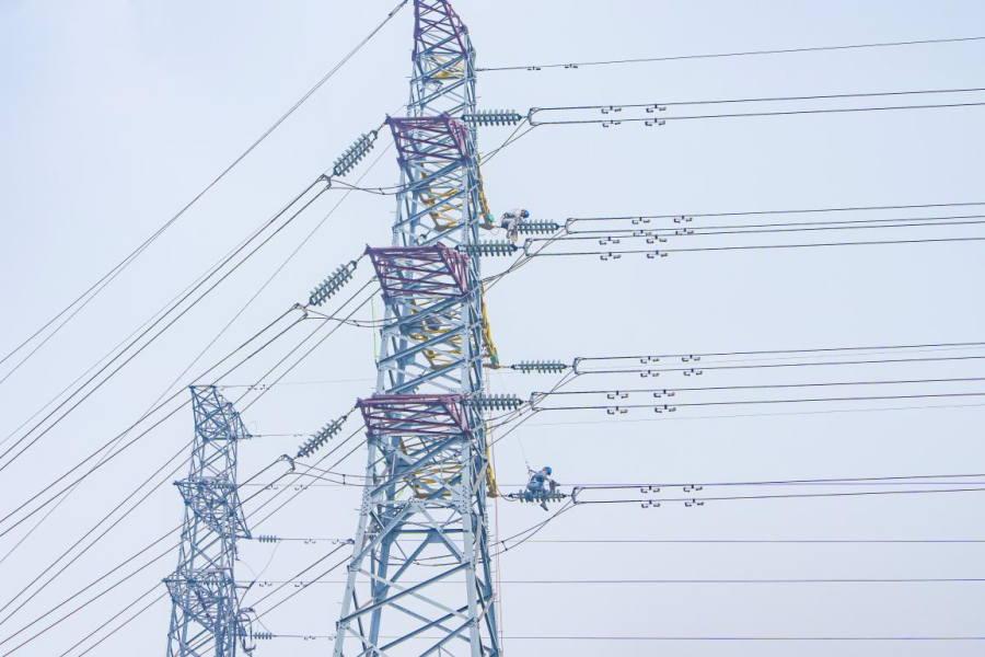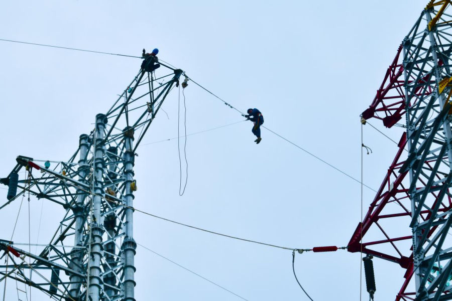 10月,秋高气爽,风和日丽。趁着好时节,电力工人忙碌在电网检修现场,守护电网安全稳定运行。