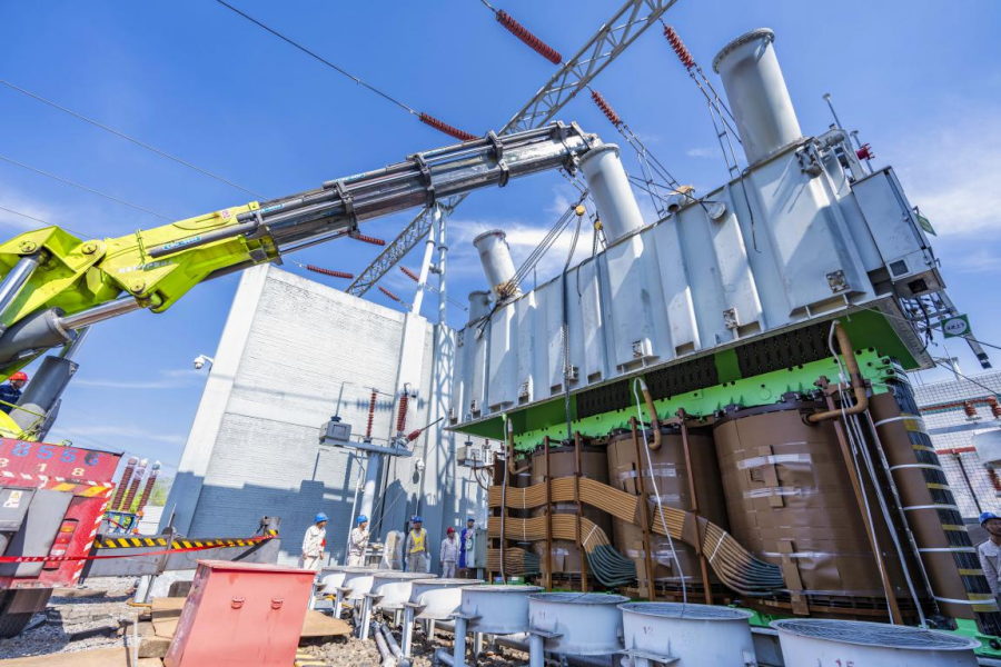 10月15日,国网重庆长寿供电公司对220千伏八颗变电站2号主变压器开展吊罩检修作业。(况敏 摄)
