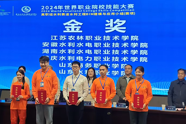 10月28日至31日,2024年世界职业院校技能大赛高职组水利赛道“水利工程BIM建模与应用”赛项总决赛举行,来自全国各地的57所职业院校参赛队伍共228名选手同台竞技。经过角逐,重庆水利电力职业技术学院教师张衍林、向杰指导的学生陈国豪、徐明侠、李王强、李星翰获得金奖。