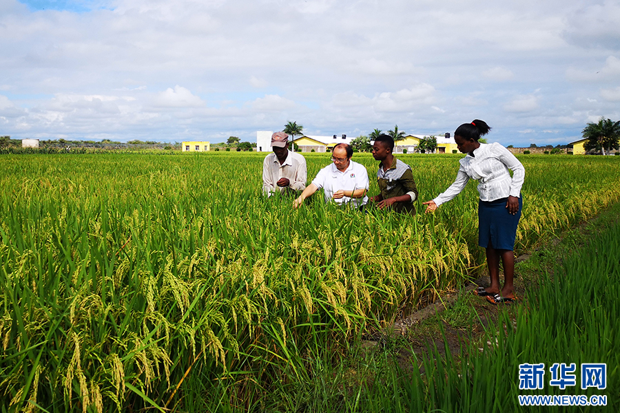 中方专家在坦桑尼亚指导当地技术人员测量水稻农艺性状。新华网发(重庆市科技局 供图)