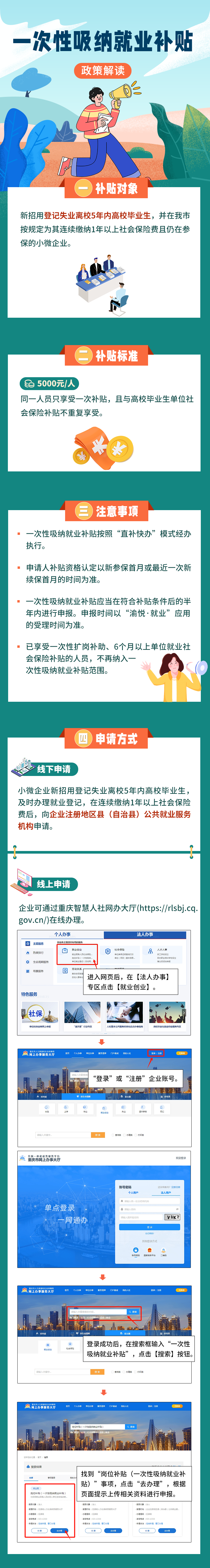 11月15日,重庆市就业服务管理局发布政策解读,关于一次性吸纳就业补贴每人5000元的申领条件。申领对象为新招用登记失业离校5年内高校毕业生,并在我市按规定为其连续缴纳1年以上社会保险费且仍在参保的小微企业。同一人员只享受一次补贴,且与高校毕业生单位社会保险补贴不重复享受。