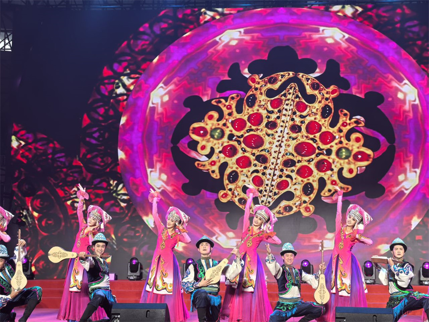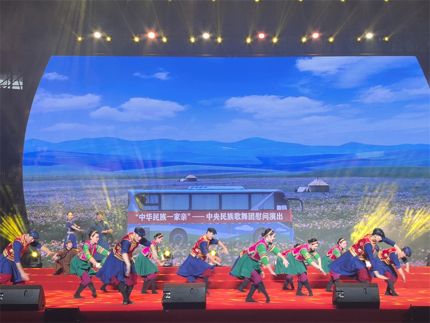 演出现场,《北京喜讯到边塞》、独唱《幸福中国一起走》《我们的祖国歌甜花香》等相继上演。悦耳动听的天籁之音、绚丽多姿的民族舞蹈、气势恢宏的器乐合奏,引来现场观众阵阵掌声。精彩的文艺节目展现了各族人民铸牢中华民族共同体意识、构筑中华民族共有精神家园的昂扬精神风貌。(王秦 余欢 刘光磊 谭艳波 罗贤为)