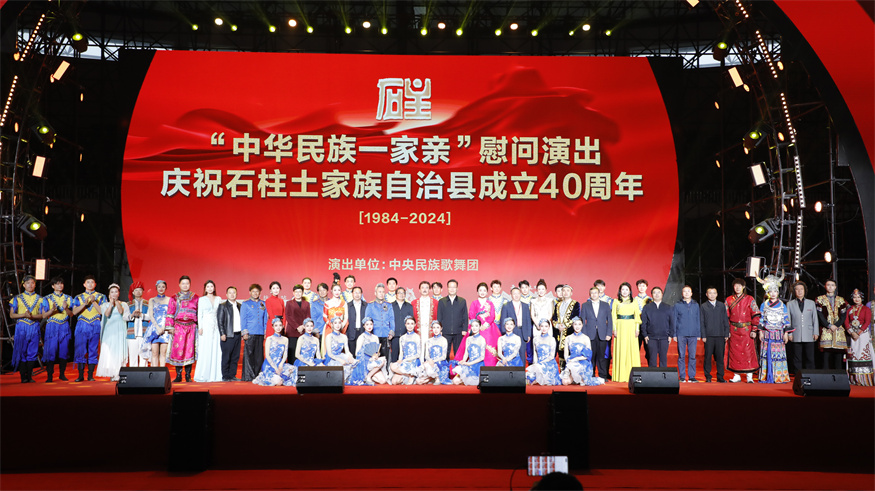 11月16日,中央民族歌舞团到石柱开展“中华民族一家亲”慰问演出,庆祝石柱土家族自治县成立40周年。