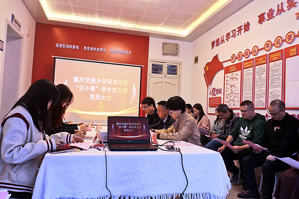 会上,全体党员审议通过了《中共重庆交通大学河海学院“交小菁”学生支部委员会选举办法》,审议通过监票人、计票人。支部正式党员严格按照规定和流程,以无记名投票的方式差额选举产生了支部委员会委员。