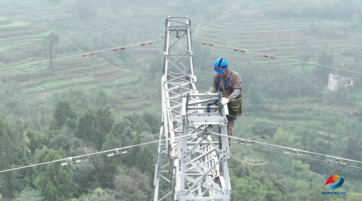 “我们在用无人机开展线路巡视过程当中,发现220千伏丰牵北线27号塔B相U型环销钉缺失,这可能会导致输电线路绝缘子掉串。今天,我们的主要的工作是紧固螺栓、补缺销钉,清扫绝缘子,消除隐患。”国网重庆丰都供电公司输电运维检修班专责工崔利志说。