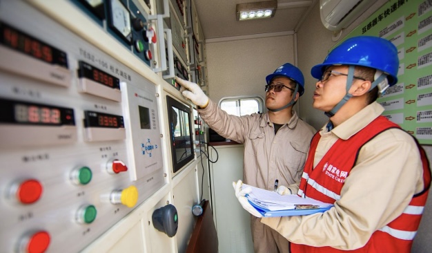 工作人员正在对综控室进行日常巡检,检查电流、电压、功率、温度等参数是否正常。
