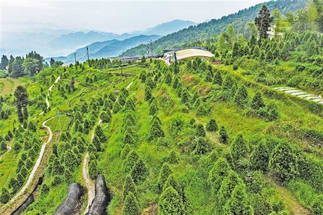 开州区崖柏繁育科研基地,人工繁育回归野外的崖柏在群山怀抱中生长。记者 尹诗语 摄/视觉重庆