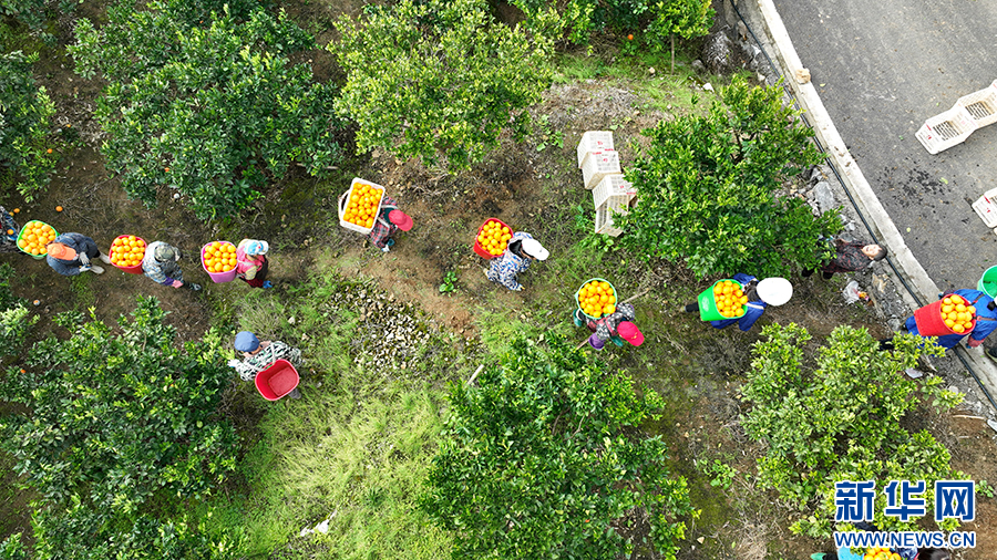 11月27日,重庆市秀山土家族苗族自治县洪安镇迎来脐橙采摘季,果农们正抓紧进行采摘、搬运、分拣、打包等工作,供应越南、孟加拉等国外市场。近年来,重庆市秀山土家族苗族自治县不断发展壮大柑橘产业,打造本土品牌,依托区位优势,借力西部陆海新通道,加强与东盟各国贸易往来,积极发展跨境电商,推动柑橘快进快出武陵山的同时降成本、增时效,让当地果农受益增收。新华网发(胡程 摄)