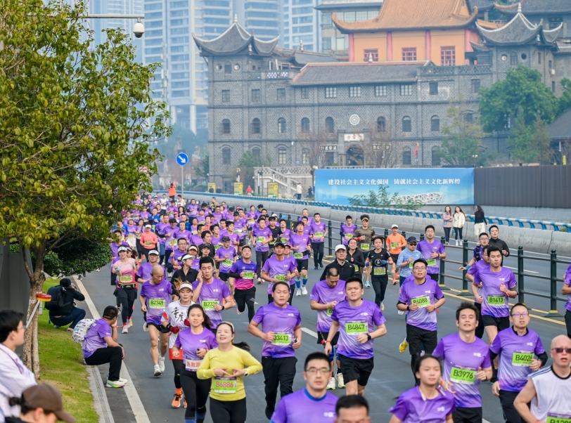 11月30日,2024中国田径协会10公里精英赛(重庆站)暨重庆10公里挑战赛在重庆南滨路鸣枪起跑。来自中国、韩国、法国、加拿大、日本等7个国家和地区、281个城市的7000名选手共同奔跑在美丽的南滨路,尽情领略巴渝山水壮丽,品味山城的历史人文。