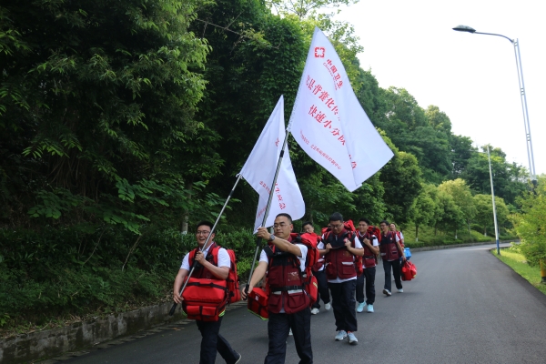 传染病背囊化卫生应急快速小分队正在进行野外徒步训练。
