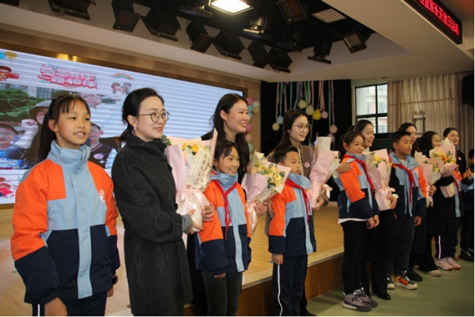 孩子们为老师献花,感谢师恩。