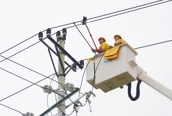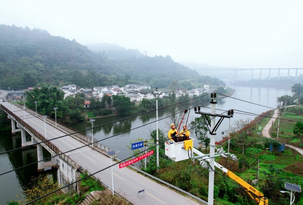 12月16日,在长寿区但渡镇但渡大桥旁,国网重庆长寿供电公司不停电作业班正对新建的30千瓦充电桩进行带电接火。
