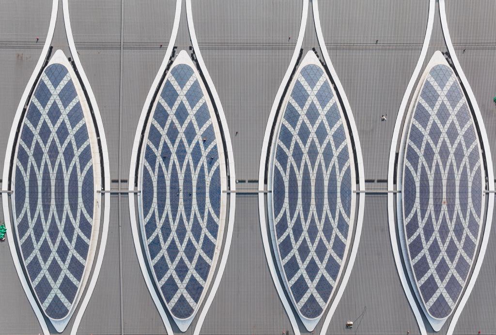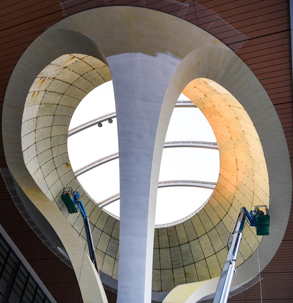 这是12月23日拍摄的建设中的重庆东站站房及配套综合交通枢纽工程(无人机照片)。