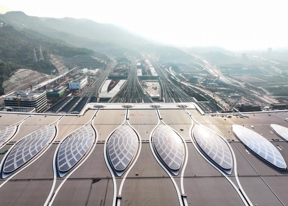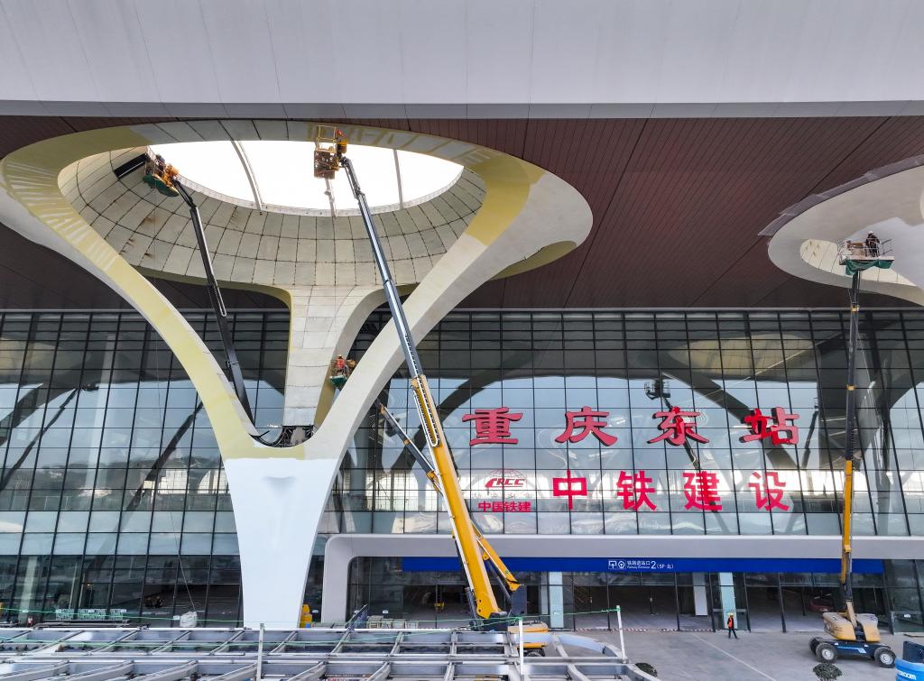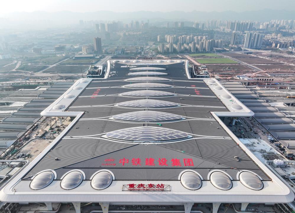 目前,由中铁建设等单位承建的重庆东站站房及配套综合交通枢纽工程正加紧建设,进展顺利。