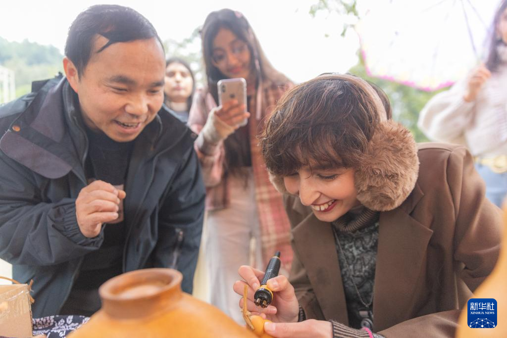 当日是腊八节,外国留学生们来到重庆市北碚区金刀峡镇偏岩古镇,体验剪窗花、糖画、葫芦雕刻等传统民俗文化活动,品味“中国年”。