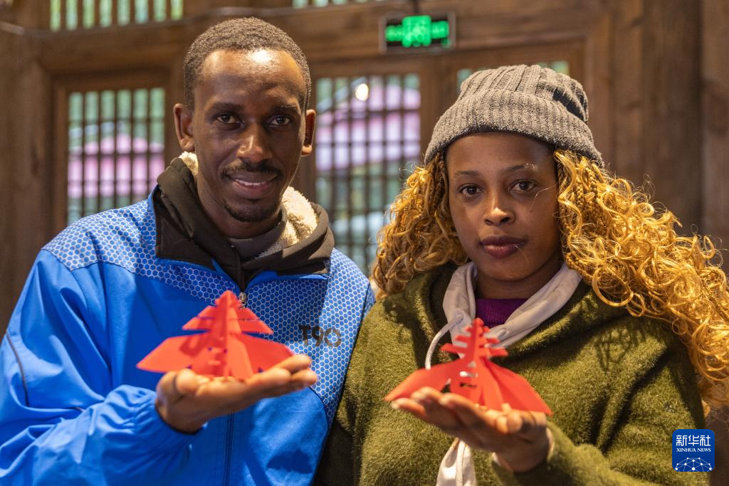 1月7日,在重庆市北碚区偏岩古镇,留学生展示自己制作的剪纸作品。新华社记者 黄伟 摄