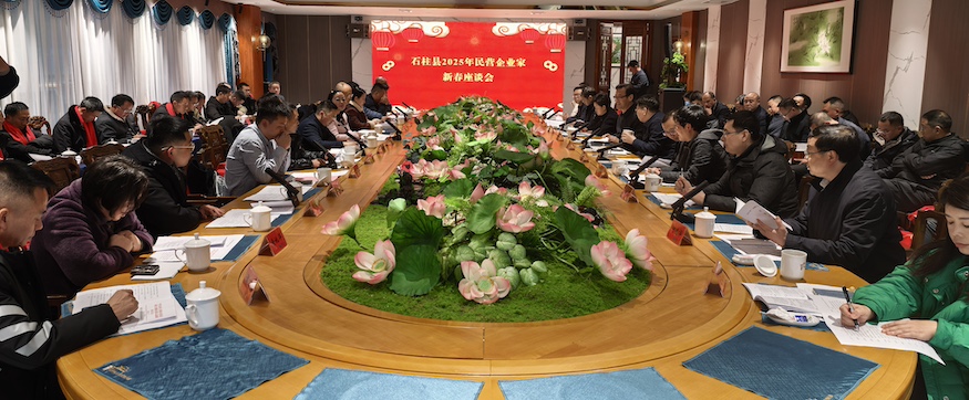 1月13日,重庆市石柱土家族自治县2025年民营企业家新春座谈会在石柱县桥头镇陶然居瓦屋小镇召开。重庆市工商联党组成员、副主席范文佳,石柱县委书记张华等与33位民营企业家代表齐聚一堂,畅谈发展成果,共谋合作方向。