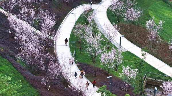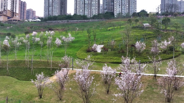 忠县香山体育公园依坡而建,占地300亩。公园内市政道路、综合管网等基础建设配套完善,登山步道、羽毛球场、兵乒球场等运动功能齐备。园内景观绿化面积17万平方米,栽植有红叶李、美人梅、樱花、蓝花楹、樱花、紫薇等多种花木。今年2月底,重庆市城市管理局发布《公园里的春天—2025年重庆市城市公园春季赏花指南》,涵盖全市168个455处公园集中赏花点。其中,忠县香山体育公园、临江公园、白公生态文化公园榜上有名。