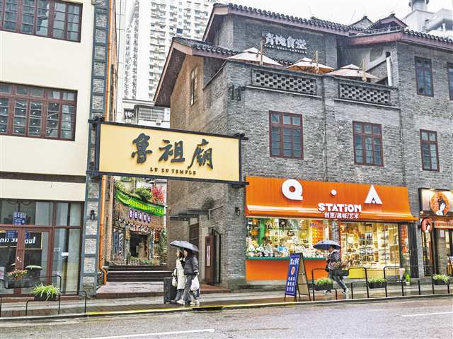 吸引舒畅回归的鲁祖庙曾是重庆母城外扩的原点,它经历了清末民初的“匠市”、抗战时期的“书市”和闻名遐迩的“花市”。如今,承载重庆母城100多年记忆的街区在经过3年多的改造提升后重新开街——1万多平方米的街区不仅呈现了民俗遗存的传统建筑,还聚集了精酿酒吧、独立烘焙店、潮流咖啡馆等业态,老重庆和外地游客络绎不绝前来打卡。