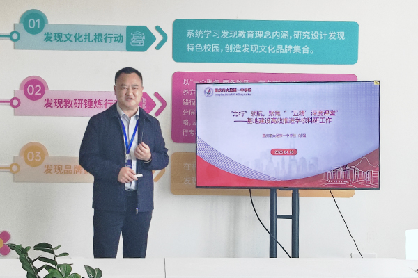 科研赋能,实验创新,五精育人,向阳而生。4月28日,重庆市大足第一中学校校长刘强受邀参加由北京教育科学研究院主办的办学实践研讨会,作为重庆市教育科研实验基地代表,刘强以《“力行”领航,聚焦“‘五精’深度课堂”——基地建设高效推进学校科研工作》为题作专题发言,向全国教育界同仁分享以科研驱动学校高质量发展的实践经验。