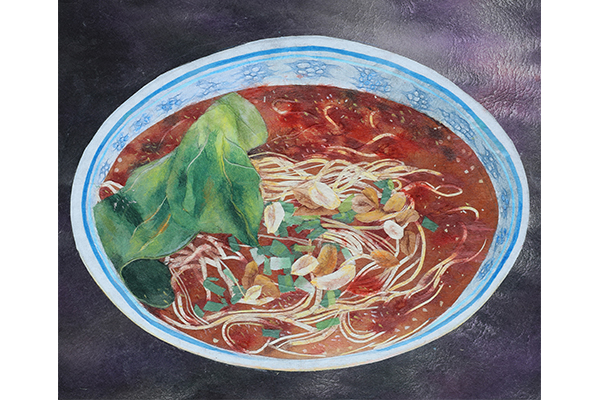 高2019级学生樊雨欣作品《重庆小面》,栩栩如生。