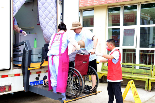 “能让老人好好洗个澡,晚年生活会更有尊严。”5月23日上午,一辆白色厢式助浴车缓缓驶入綦江区赶水镇养老服务中心。车门轻启,4名身着蓝色工装的助浴志愿者迅速摆桌供老人进行健康评估,放下无障碍升降平台,调试车厢温度——这场为失能、半失能特困老人提供的流动助浴服务正式启动。