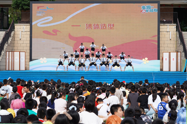 活动伊始,来自重庆市杂技艺术团的专业演员们,为孩子们带来一场震撼人心的非遗杂技表演。单手倒立、绳技、球技、集体造型等节目陆续呈现,演员们用心演绎,不时做出倒立旋转、花式跳绳、连续空翻、叠成人墙等高难度动作,引得现场“哇”声一片。