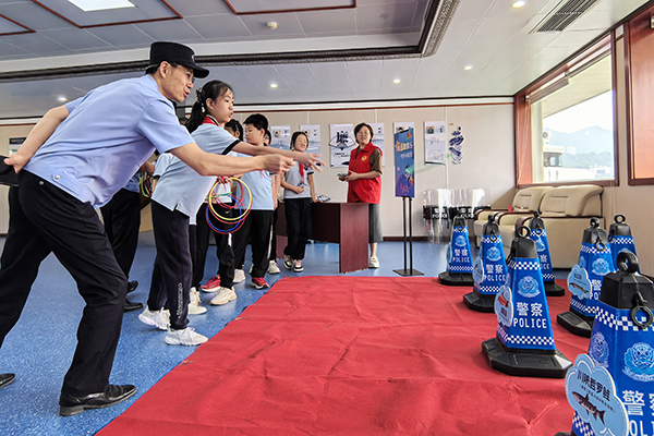 “世界环境日”之际,重庆市公安局水上分局依托“警校社”联动机制,携手渝中区南纪门街道解放西路社区,邀请解放西路小学师生代表走进重庆公安趸船,开展了一场别开生面的“警蓝守碧水 童行护长江”警营开放日活动。