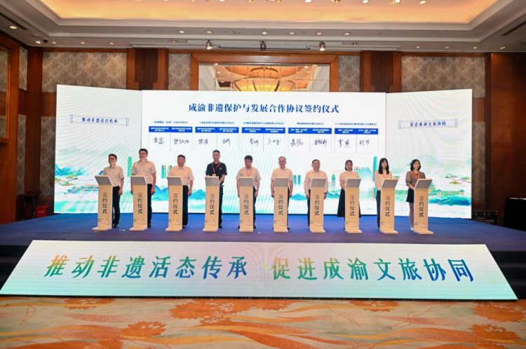 大会搭建了非遗战略合作平台,成渝两地行业主管部门、协会代表、非遗企业签订了成渝非遗保护与发展合作协议,深化双城非遗合作落地。