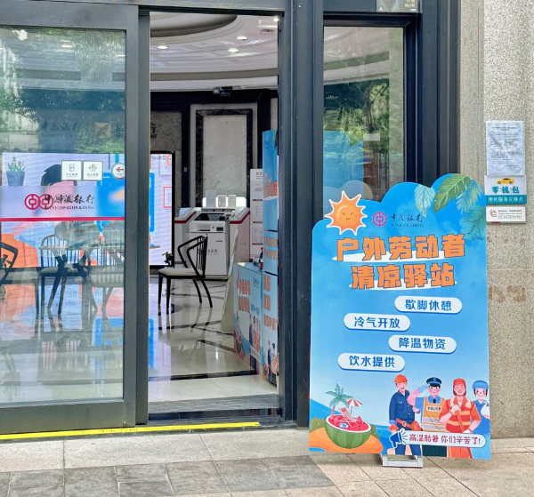 近日,中国银行重庆凤澜路支行主动延伸服务触角,依托“中银公益驿站”品牌,打造“户外劳动者清凉驿站”,为酷暑中坚守岗位的户外工作者送去夏日关怀。