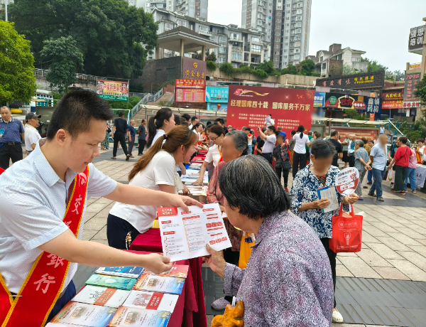 工作人员为现场广大群众发放宣传折页,讲解国库职责、国债等相关知识,提升公众对国库基本职能和国债产品的知晓度与理解度。交行重庆长寿支行还组织工作人员走进某集团公司,为企业职工讲解国库知识,引导职工主动了解国库政策、支持国债发行。