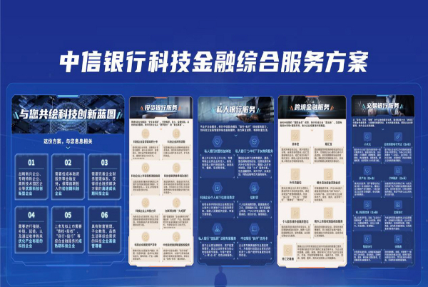 如果说“小信”是面向C端的服务尖兵,那么展台核心区全景展示的“科技金融综合服务方案”,则彰显了中信银行赋能B端、服务实体经济的强大内核。