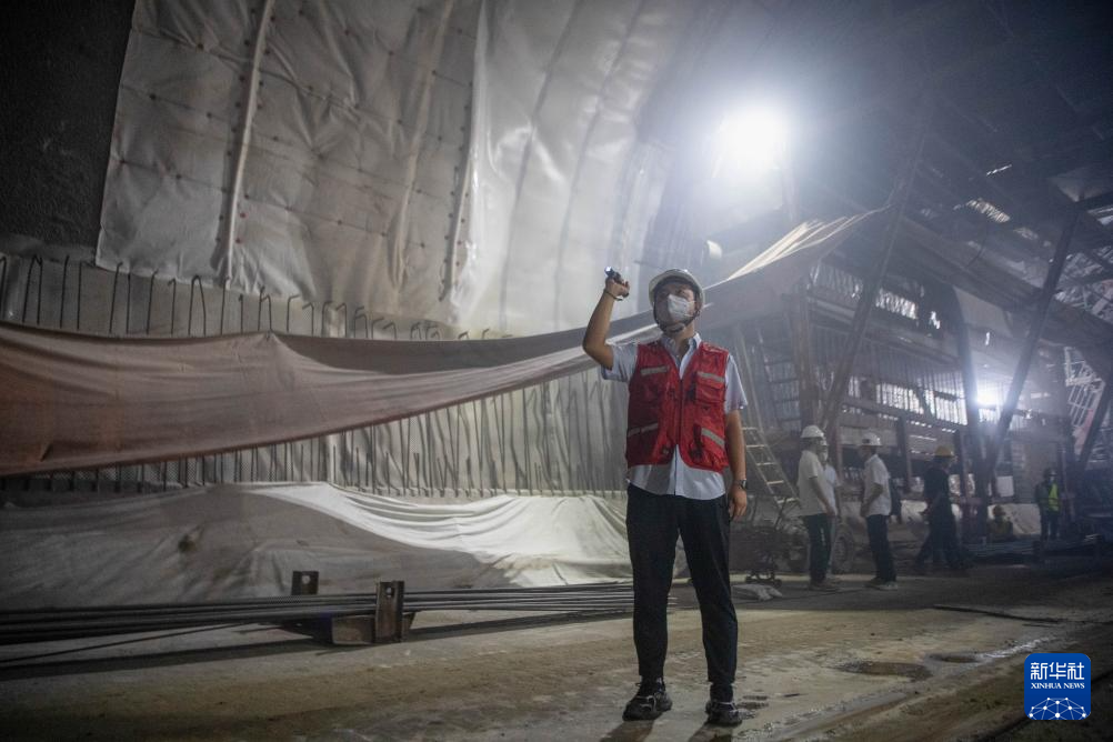 9月27日,工人在成渝中线高铁缙云山隧道建设现场施工作业。新华社记者 唐奕 摄