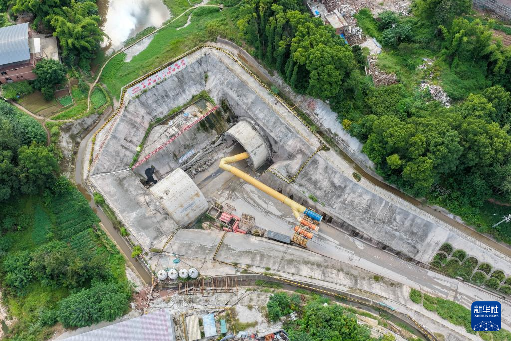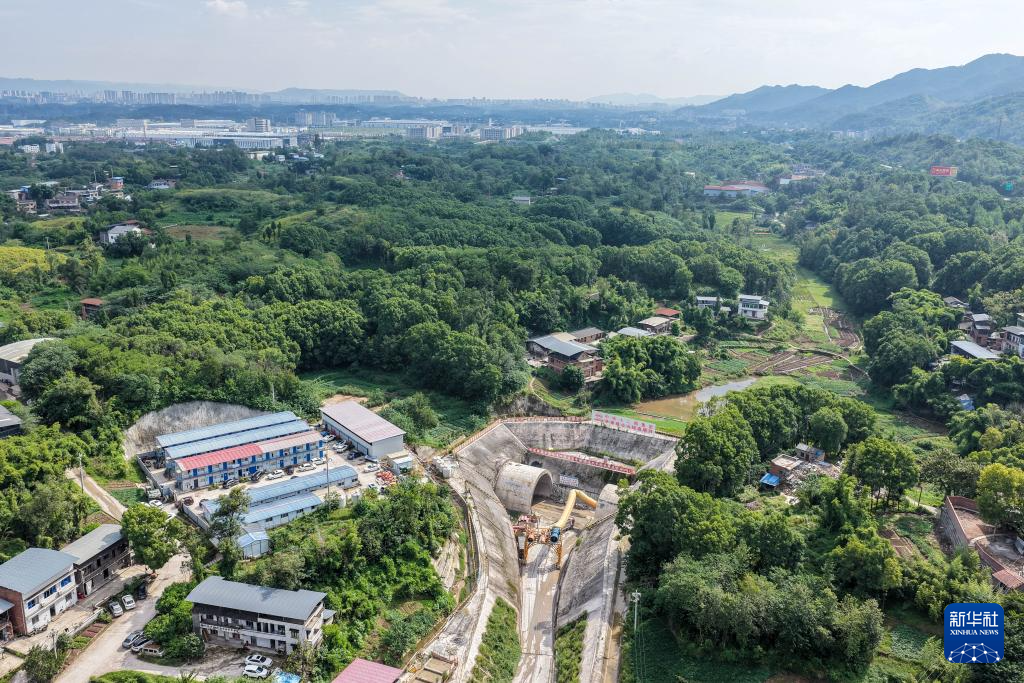 这是9月27日拍摄的成渝中线高铁缙云山隧道建设现场(无人机照片)。