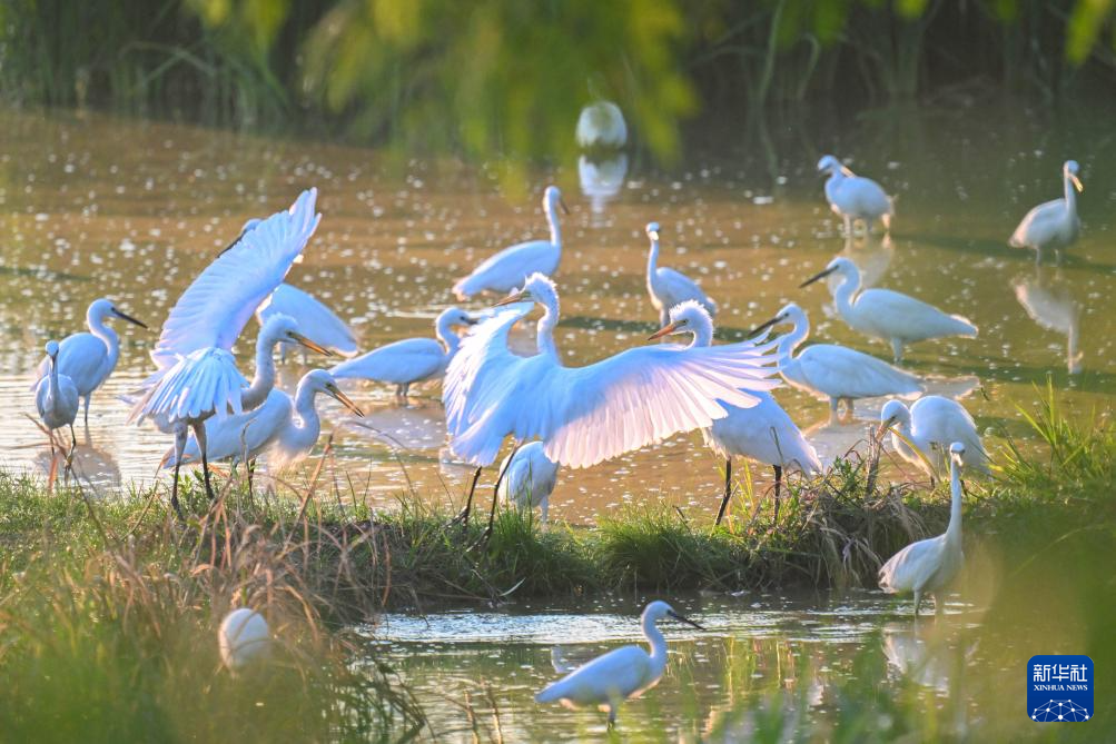 这是7月29日在双桂湖国家湿地公园内拍摄的白鹭。新华社发(余先怀摄)