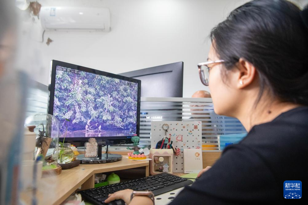 9月26日,重庆市梁平区湿地保护中心工作人员吕妮洪在保护中心内对采集数据进行整理。新华社记者 唐奕 摄