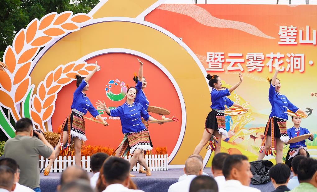 新华网重庆9月29日电(彭博)金秋时节,重庆市璧山区七塘镇将军村一片欢腾,2025年中国农民丰收节暨云雾花涧·重庆第五届乡村艺术集在此拉开帷幕。这场以“庆农业丰收 享美好生活”为主题的活动,紧紧围绕“庆丰收、促振兴”核心,巧妙融合农业、文化与旅游,为游客打造了一场“好看、好吃、好耍”的农文旅盛宴,处处洋溢着丰收的喜悦和乡村的活力。