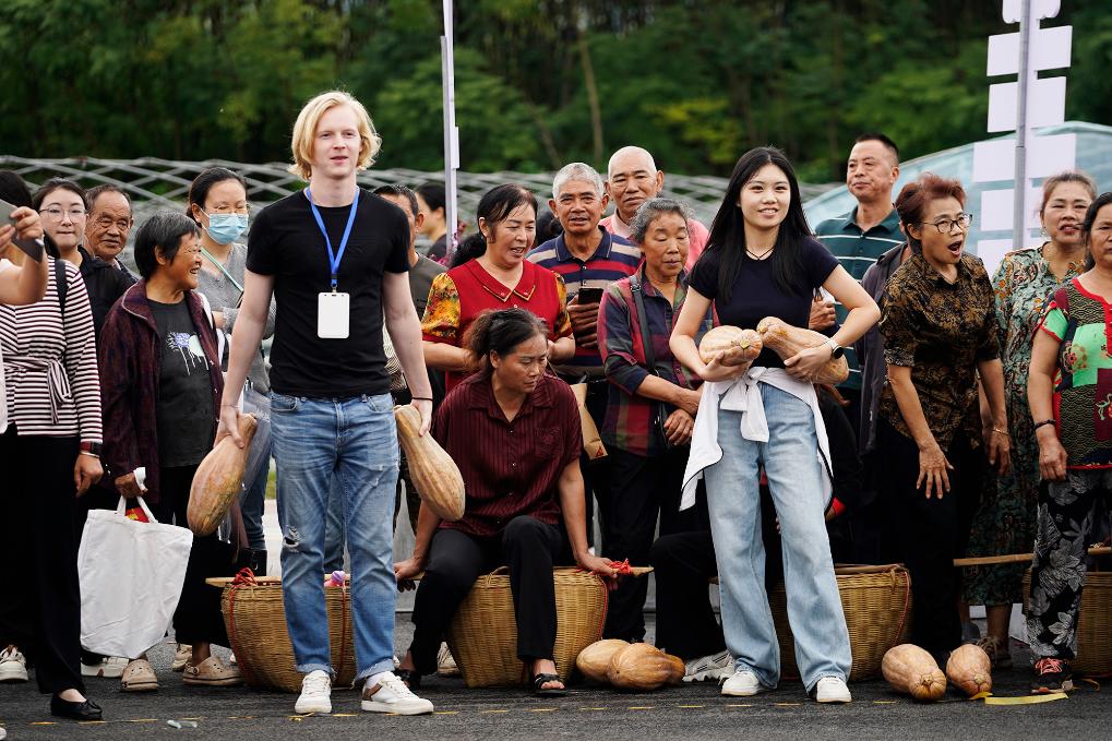 一旁的农田里,加油声、欢笑声此起彼伏。全民健身农民趣味运动会正在火热进行,村民和游客组队参与“粮食抢收”、“水果搬运”等充满农趣的比赛,大家卷起裤腿,在泥土的芬芳中体验着农耕的辛劳与快乐。亲子家庭则热衷于“蔬菜接力”、“滚铁环”等游戏,浓浓的亲情和童趣弥漫在田间地头。正如一位村民感慨:“以前没农活儿时大伙儿就在家歇着,现在村里活动这么丰富,城里人也爱来玩,越来越热闹了。”