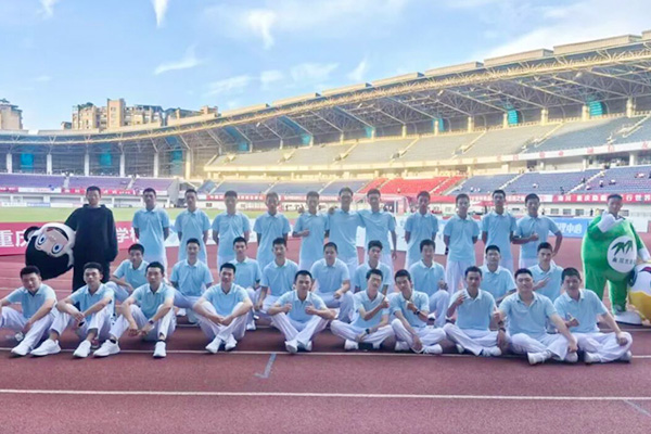 2025赛季渝超足球超级联赛南川赛区开幕式现场,南川隆化职业中学安保系学子进行团体表演。