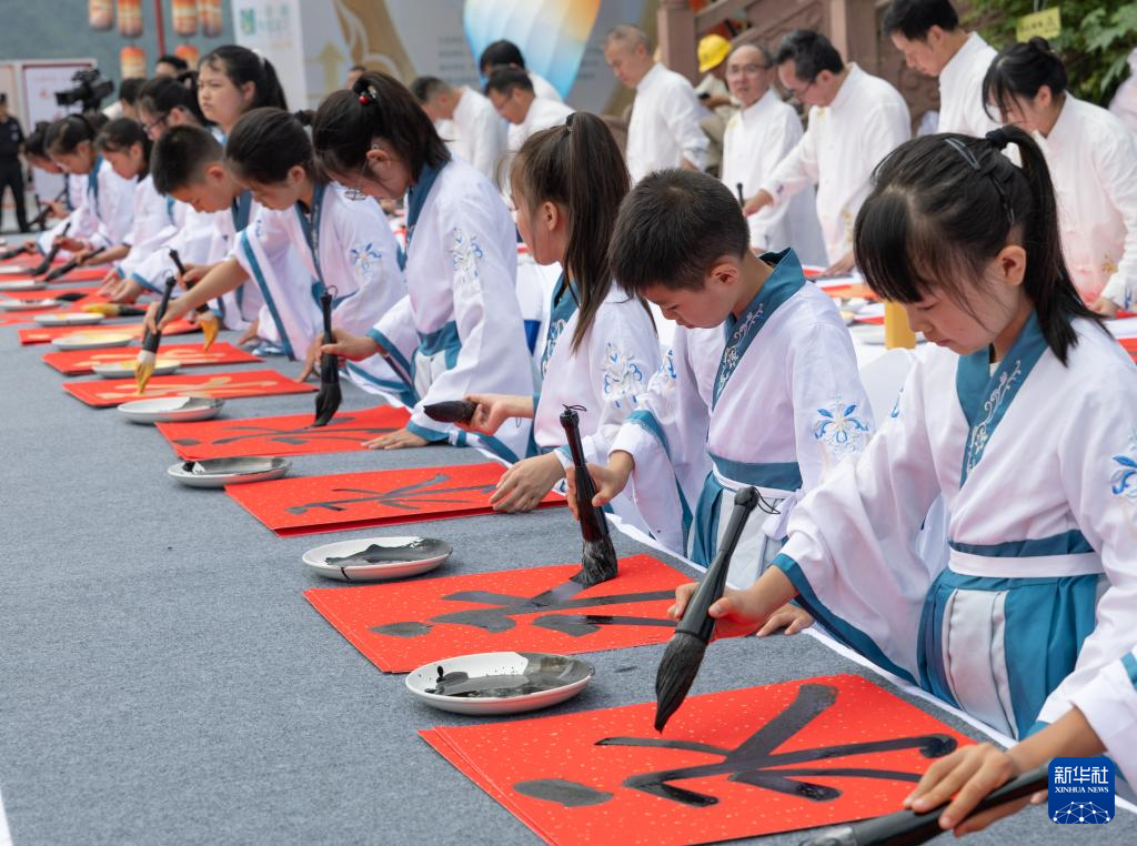 9月28日,书法爱好者在活动现场书写2025“一带一路”年度汉字“永”。新华社记者 陈诚 摄